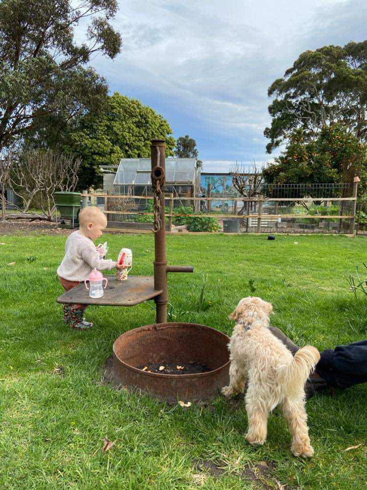 We now have our very own Yarning Circle ( named by Amy ). Helen reclaimed some logs and rusty bits and placed them like this…..we can’t wait to have a fire in the fire pit.